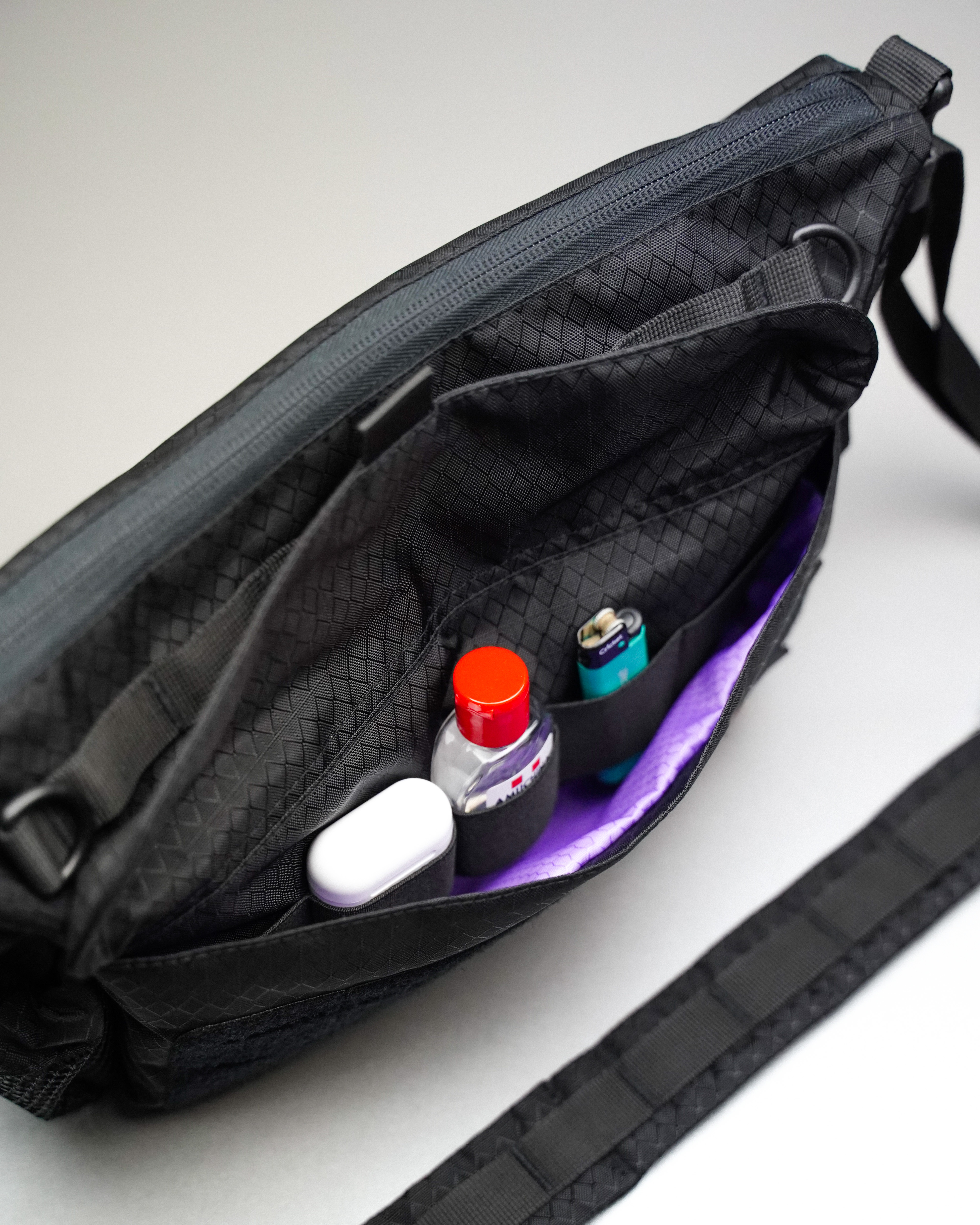 • Внутри сумки расположена отстегивающаяся ключница